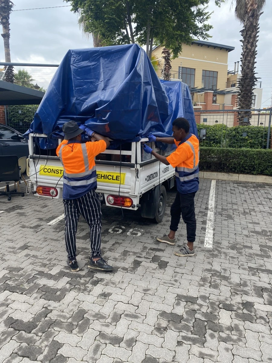 - Secure loading and watertight tarp sealing of all items on our trucks and trailers to prevent weather exposure