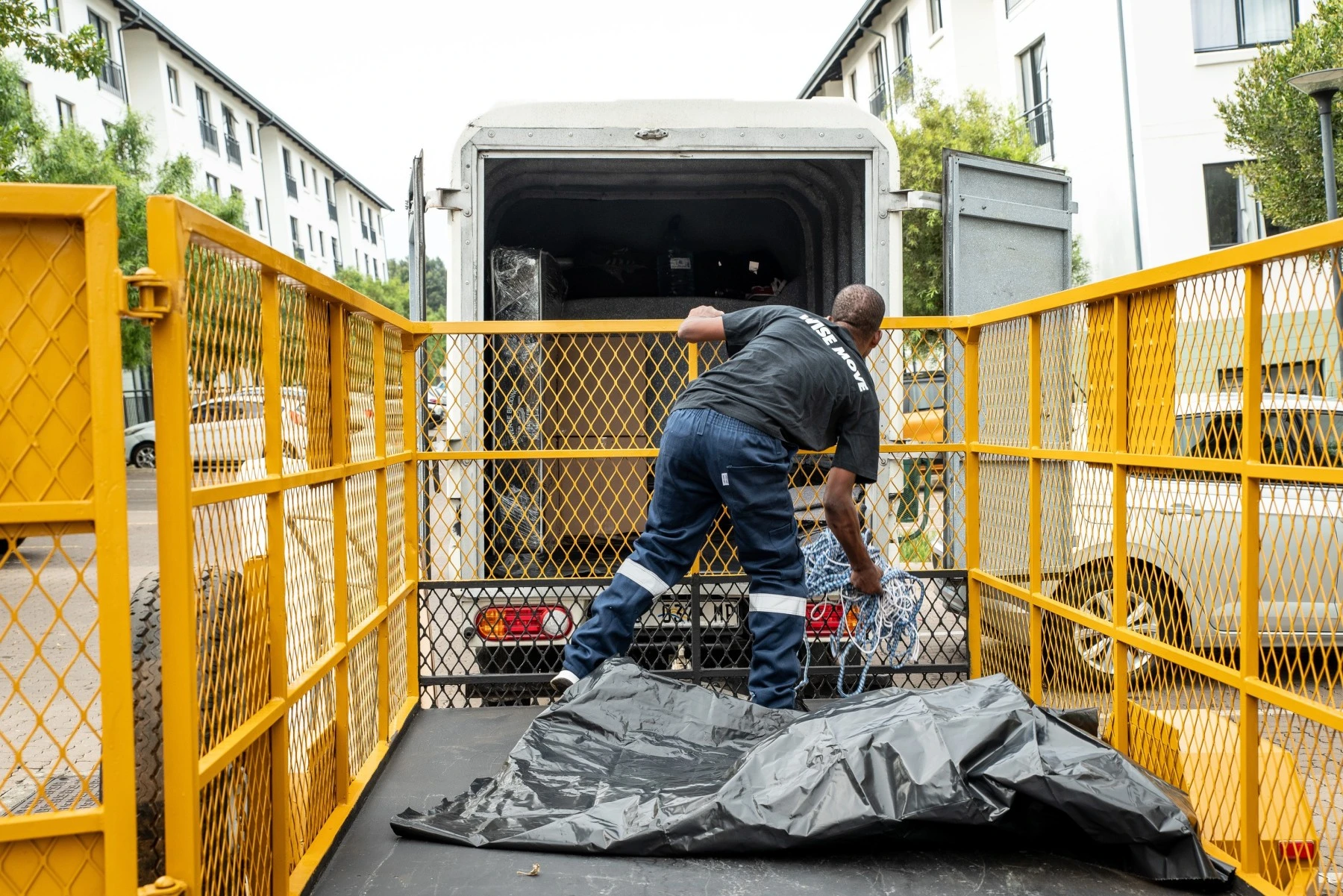 It includes wrapping large items and an H100 with a trailer and three people to load and offload.