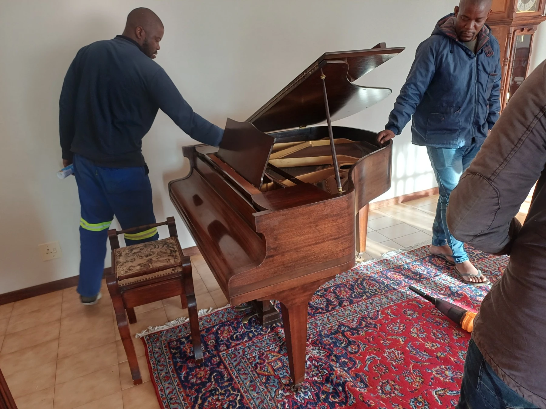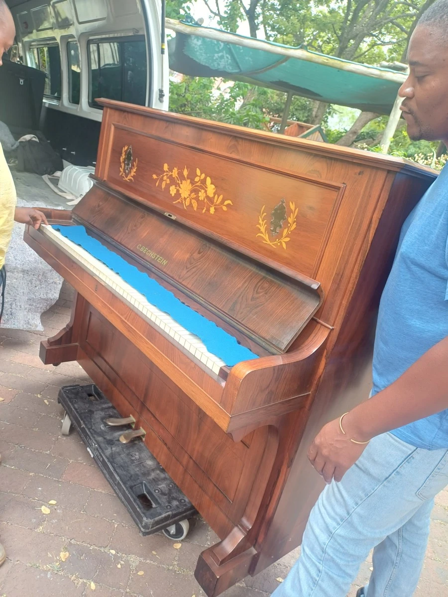 Proven track record moving antique uprights from Roodekrans to Saxonwold; careful, communicative handling for long staircases
